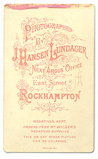 J Hansen Lundager’s dates and locations from Alan Davies’ and Peter Stanbury’s book The mechanical eye in Australia: photography 1841-1900: