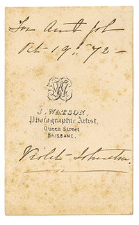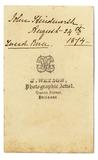 J Watson’s dates and locations from Alan Davies’ and Peter Stanbury’s book The mechanical eye in Australia: photography 1841-1900: