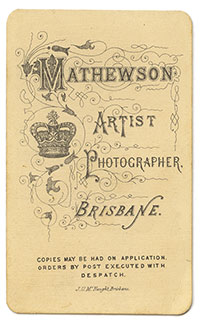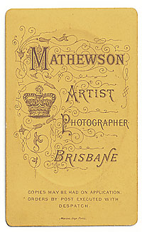 Mathewson’s dates and locations from Alan Davies’ and Peter Stanbury’s book The mechanical eye in Australia: photography 1841-1900: