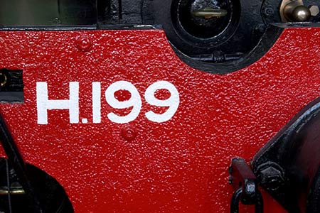 This detail sums up the condition of the loco​—​parts are heavily pitted from its time in the open air, but all is smartly painted.